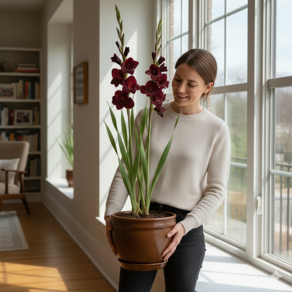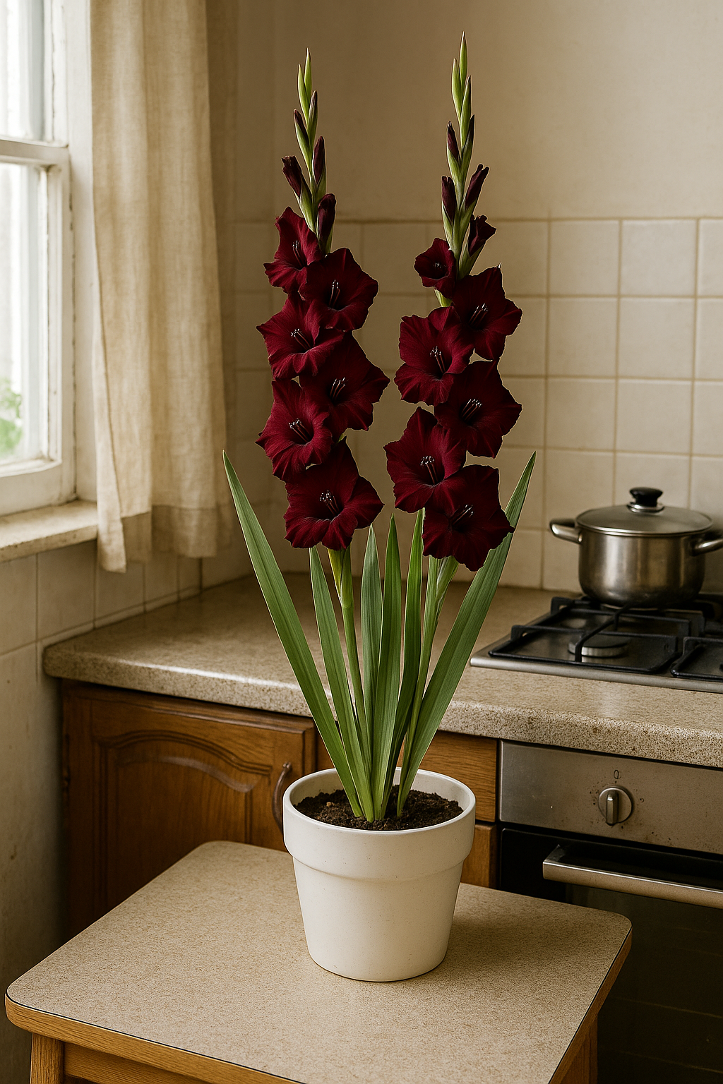 "Black Surprise" — це кімнатний гладіолус, який не просто прикрашає інтер’єр, а стає головним акцентом у будь-якій кімнаті.
