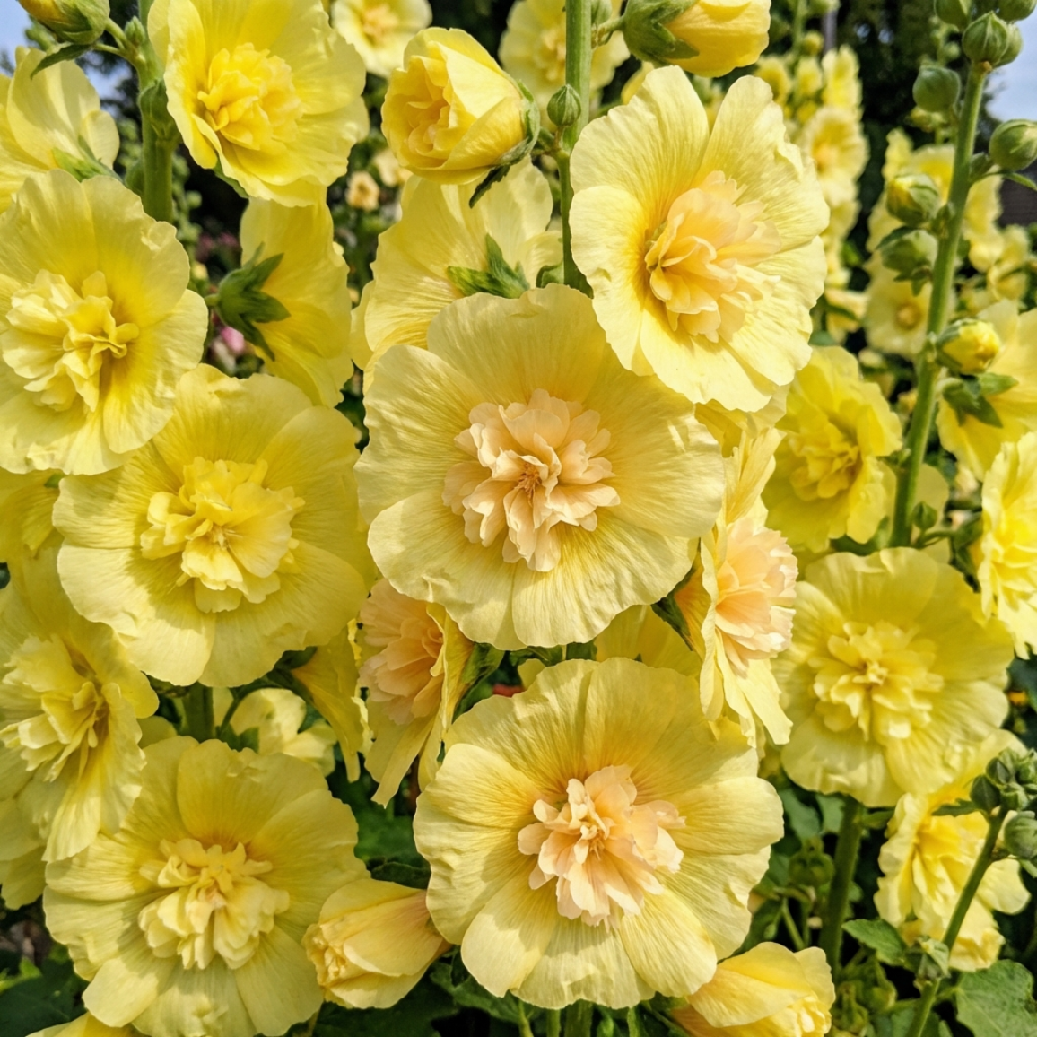 Цей сорт вважається еталонним серед махрових мальв. Його великі, півонієподібні квіти утворюють вертикальні “свічки” краси на міцних високих стеблах.